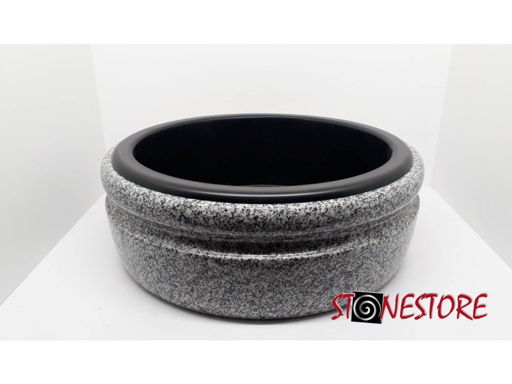 Die Granit-Grabschale ohne Boden (wie ein Ring) ist mit einem Kunststoffeinsatz versehen, der die Installation erleichtert und die Handhabung der Schale vereinfacht.