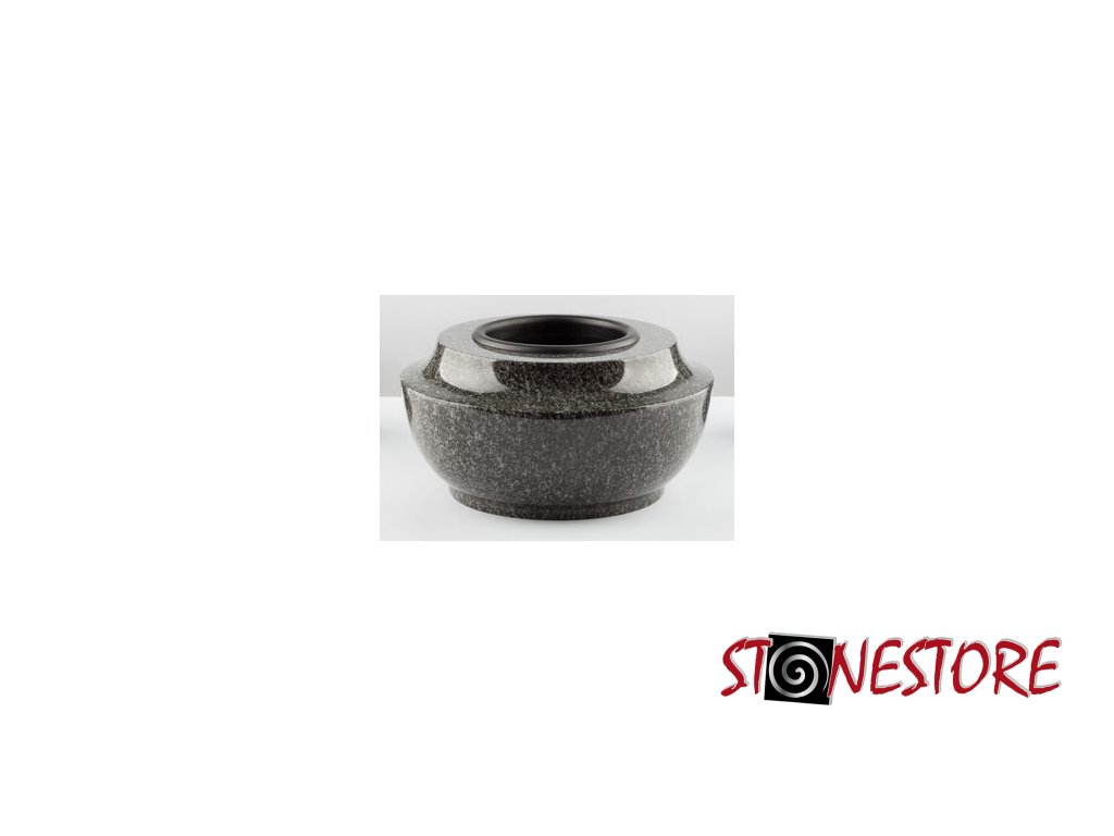 Die Granit-Grabschale ohne Boden (wie ein Ring) ist mit einem Kunststoffeinsatz versehen, der die Installation erleichtert und die Handhabung der Schale vereinfacht.