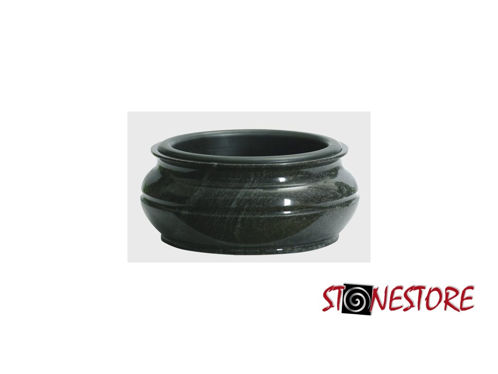 Die Granit-Grabschale ohne Boden (wie ein Ring) ist mit einem Kunststoffeinsatz versehen, der die Installation erleichtert und die Handhabung der Schale vereinfacht.